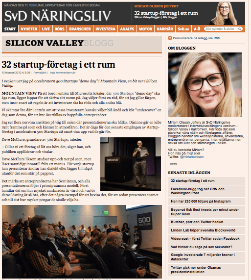 Det är söndag kväll här i San Francisco och jag sitter i soffan och planerar veckan som kommer. Under veckan som gått har jag bland annat varit just på ett entreprenörsevent. Det var acceleratorn 500 Startups ”demo day” där 32 startup-företag presenterade.