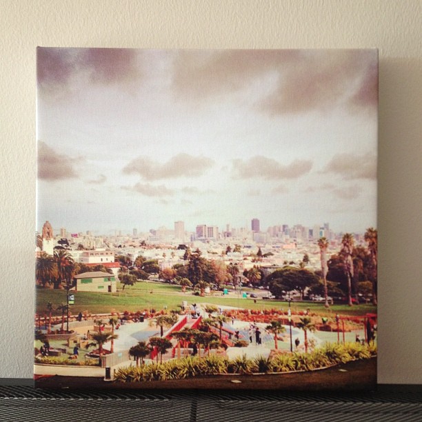 Det har kommit ett paket och jag springer ner och hämtar det. I det finns en canvastavla med ett av mina Instagram-foton som motiv.